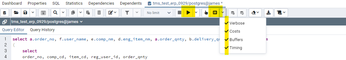 pgadmin4로 튜닝하는 방법이다.