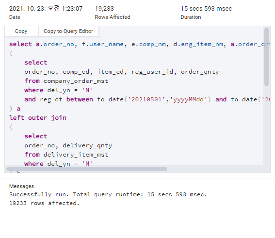 작성한 쿼리를 돌려볼때는 흔히